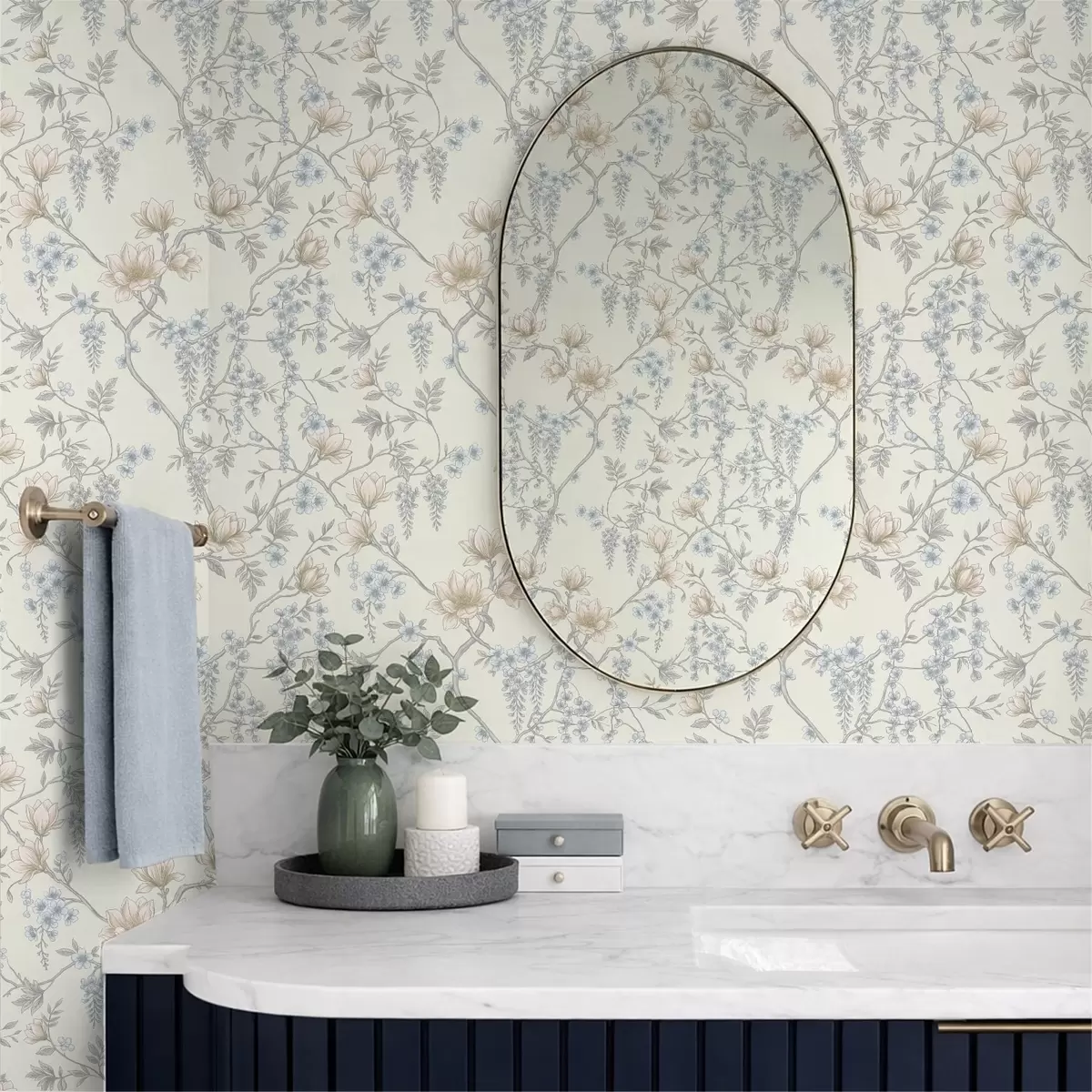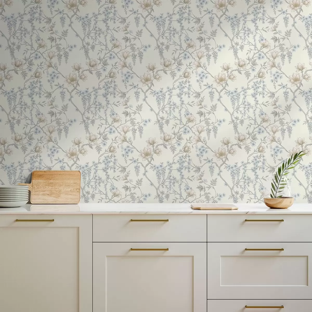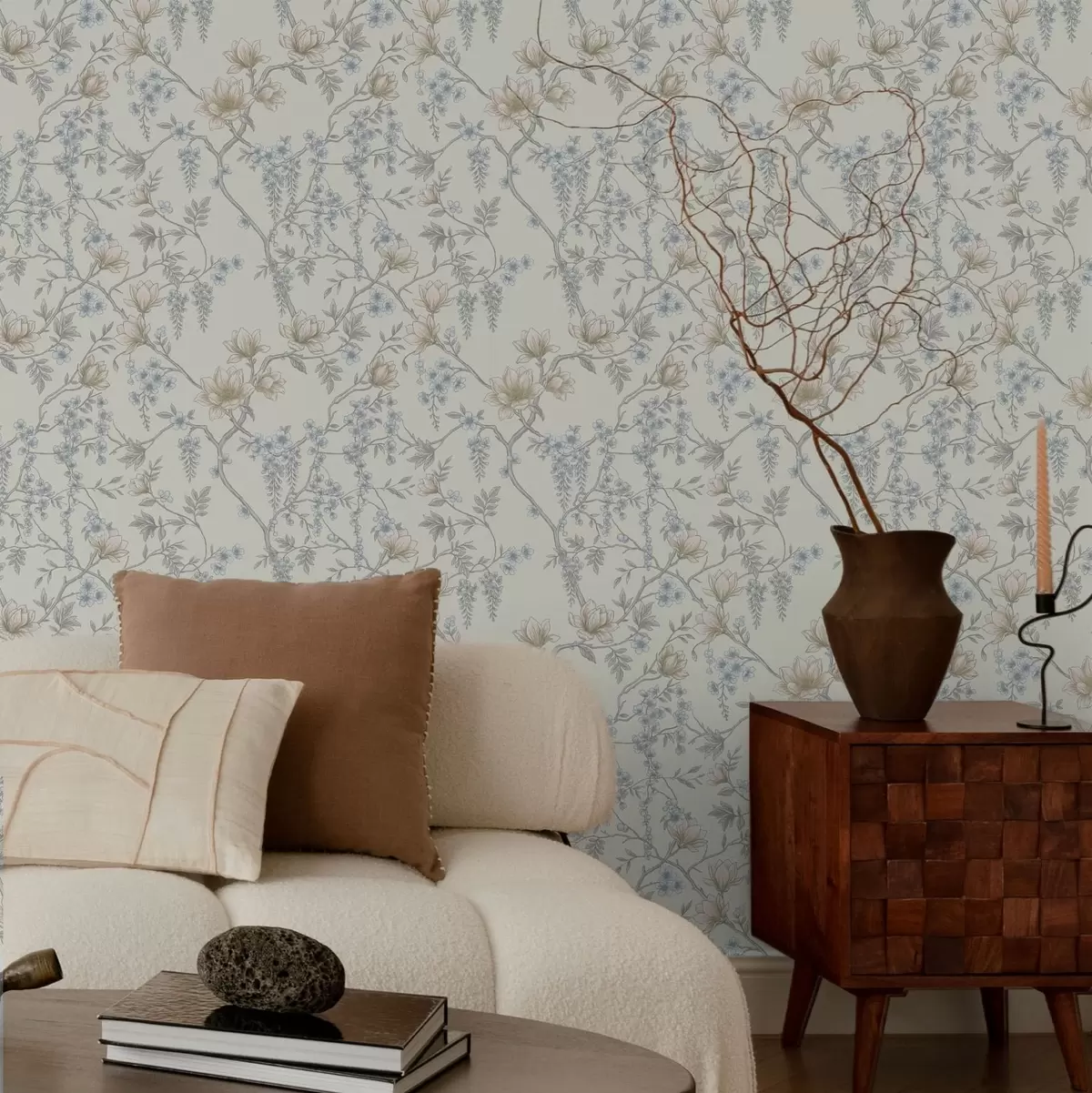Tapet Et delikat blomstermønster med grener og blomster Nr. a01159