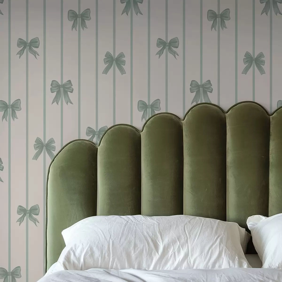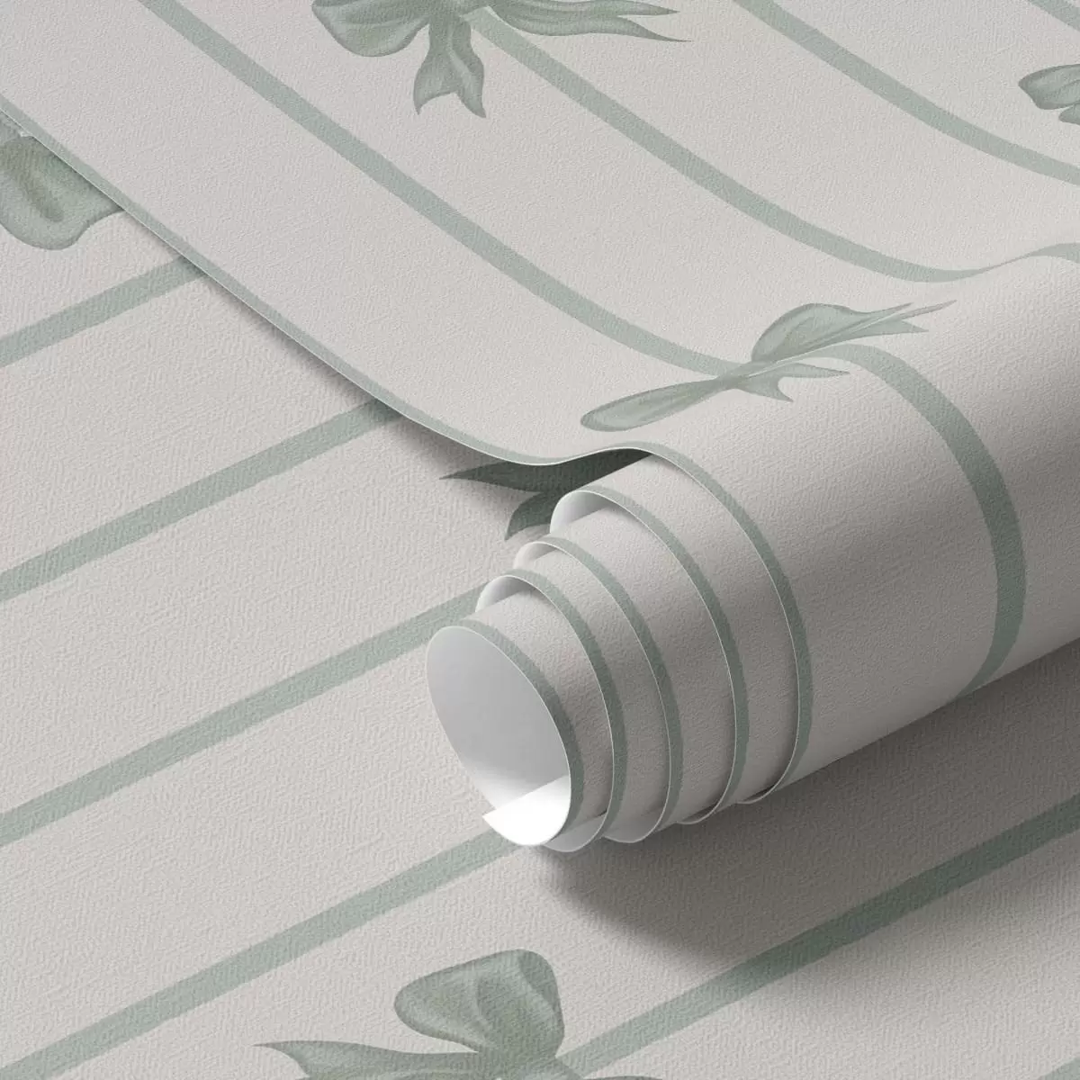 Tapet Grønne sløyfer på en stripet beige bakgrunn Nr. a01162v1