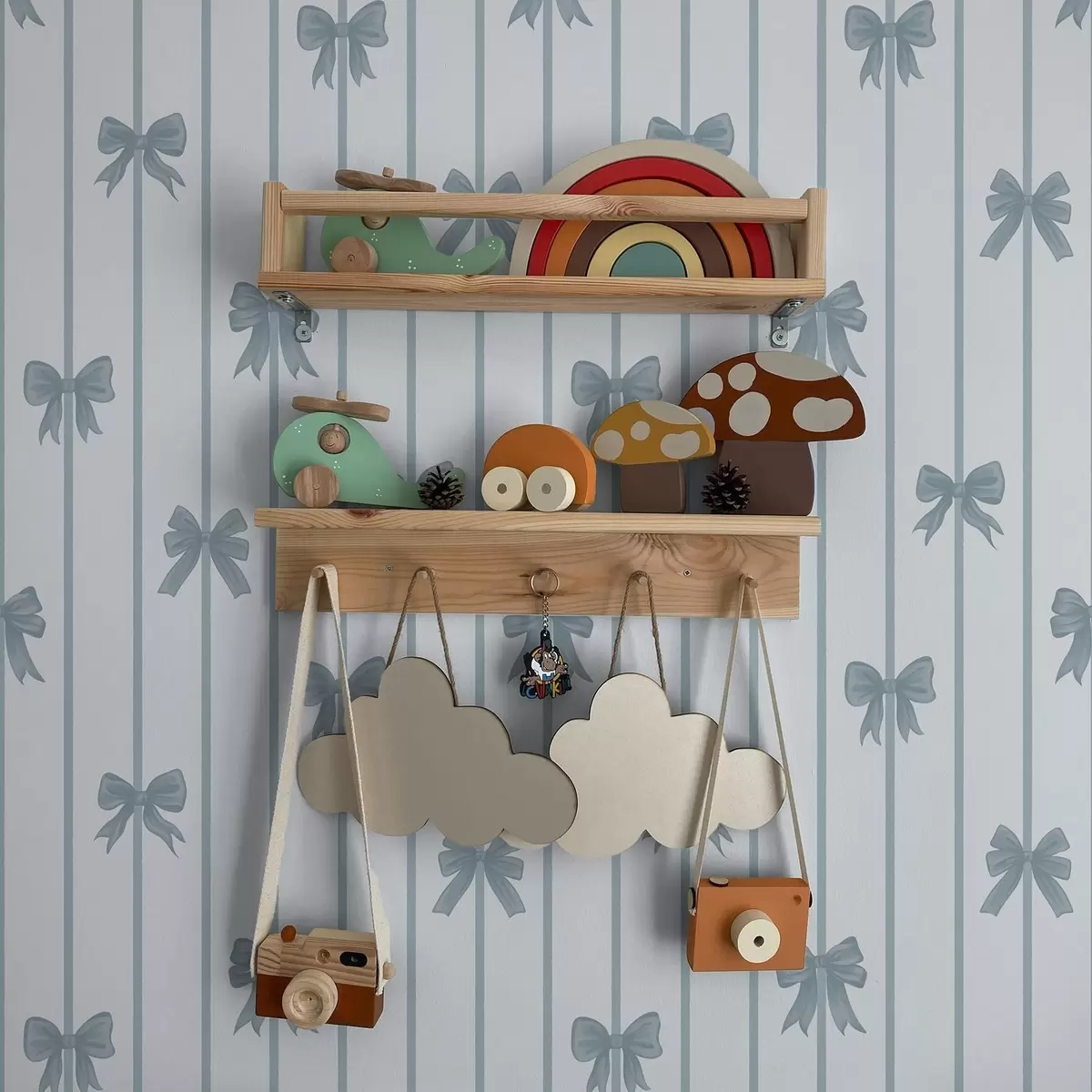 Tapet Blå sløyfer på en lys, stripete bakgrunn Nr. a01162v2