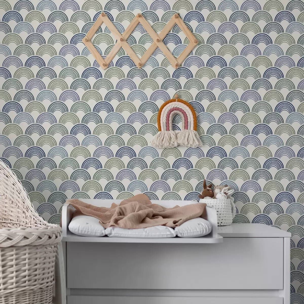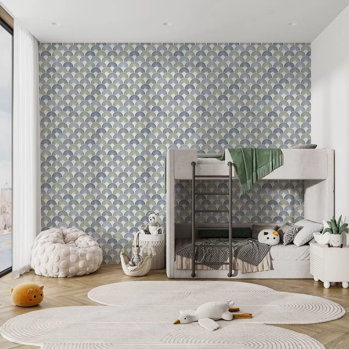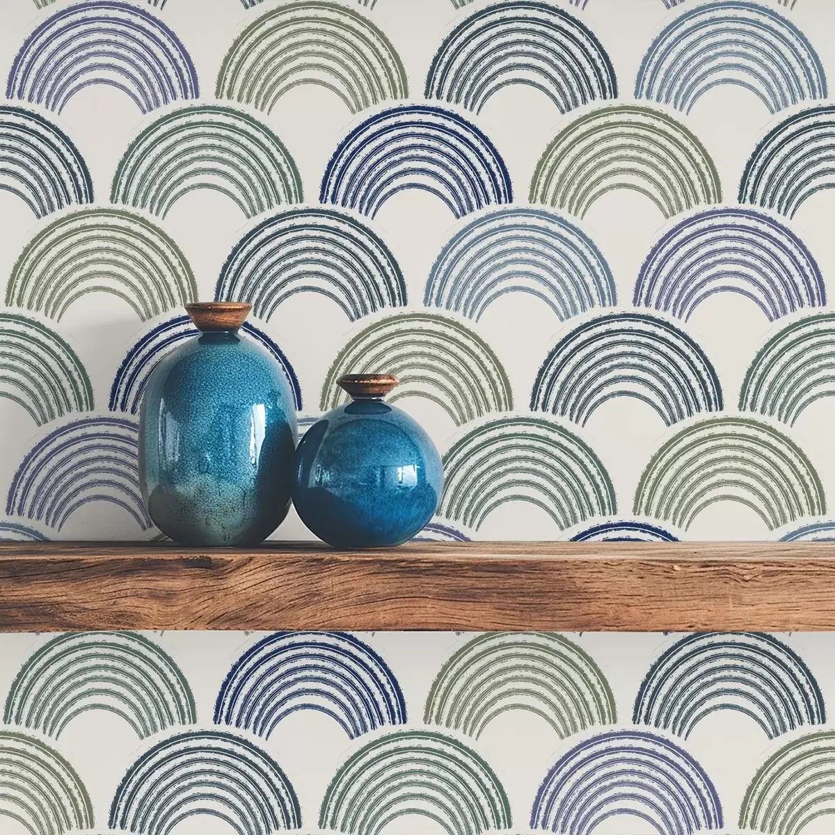 Tapet Blå og grønne buer i et repeterende mønster Nr. a01164v2