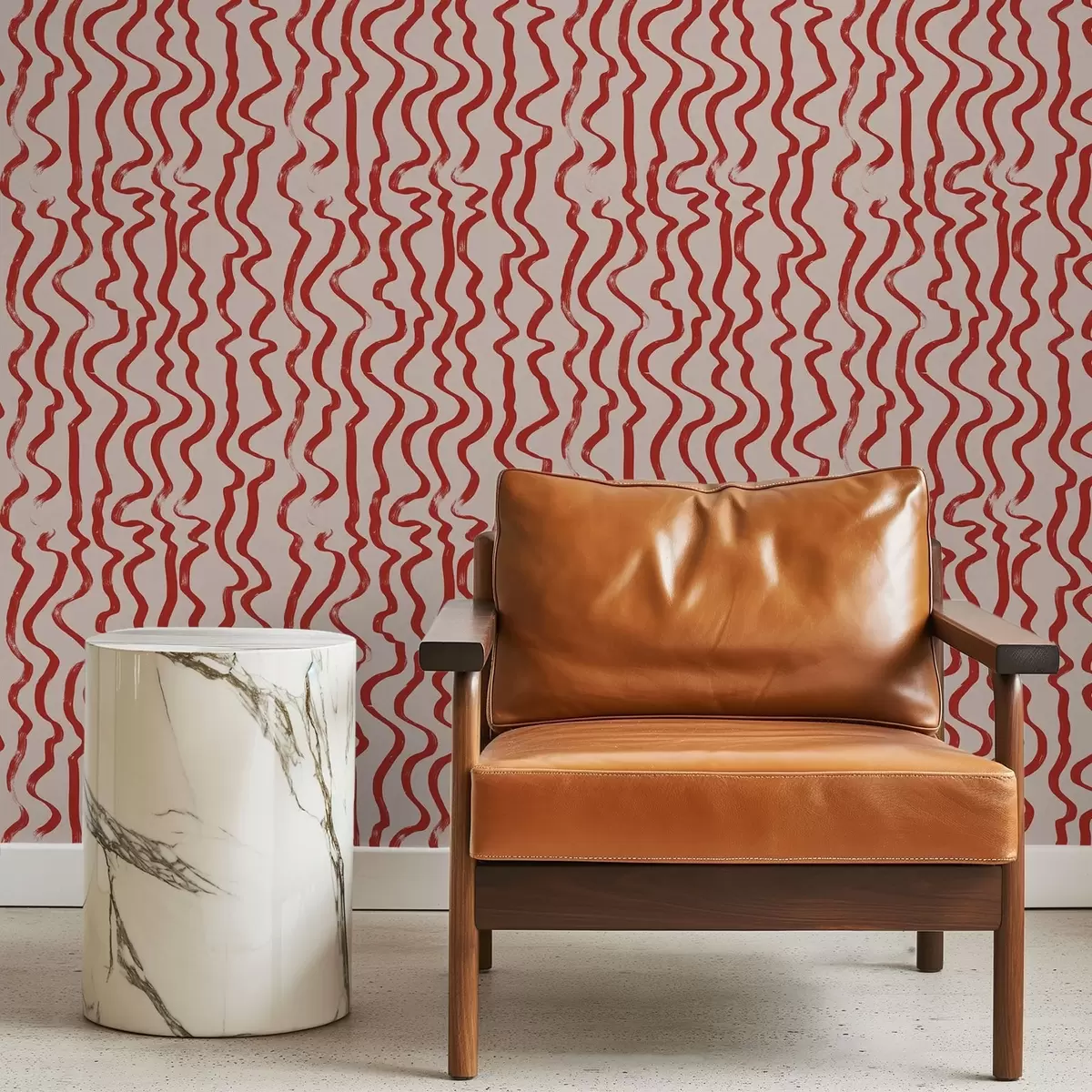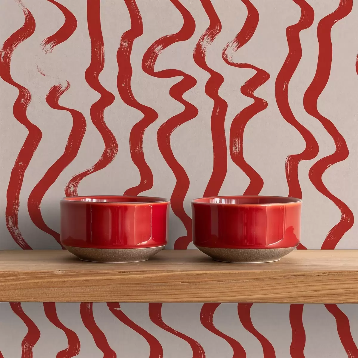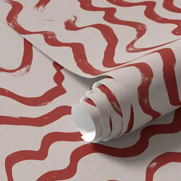 Tapet Røde bølgete linjer på lys bakgrunn Nr. a01168