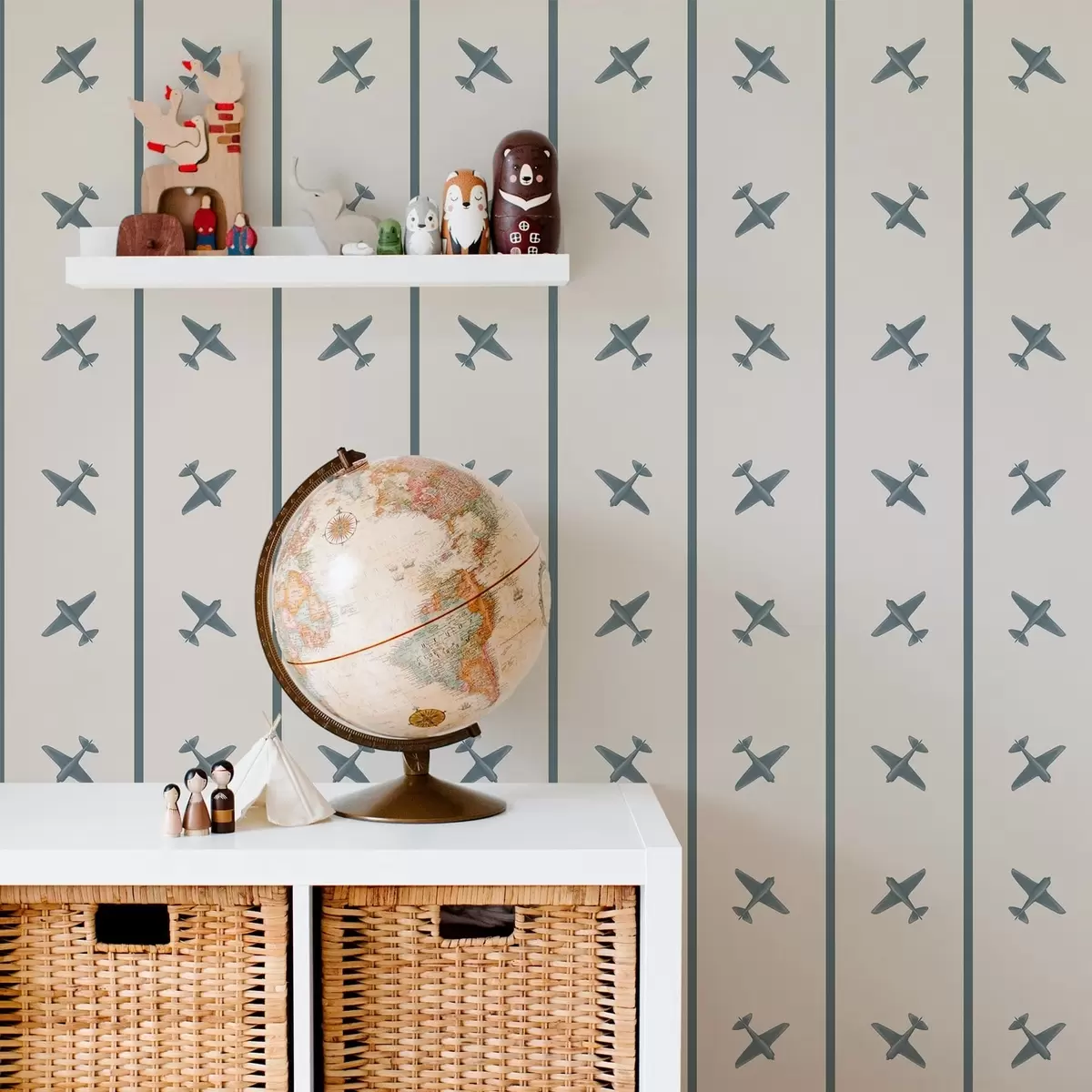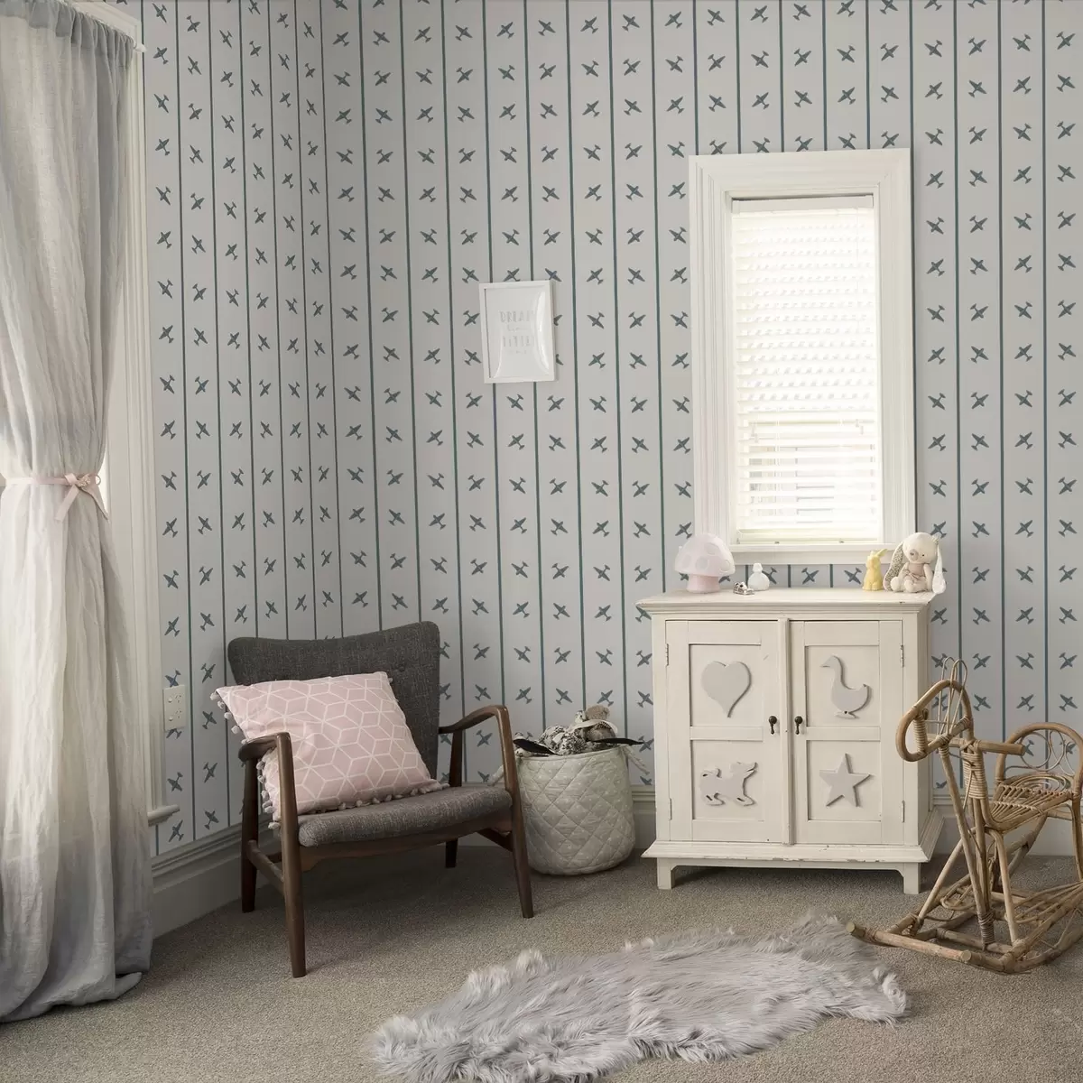 Tapet Fly med stripete mønster og blå detaljer Nr. a01169