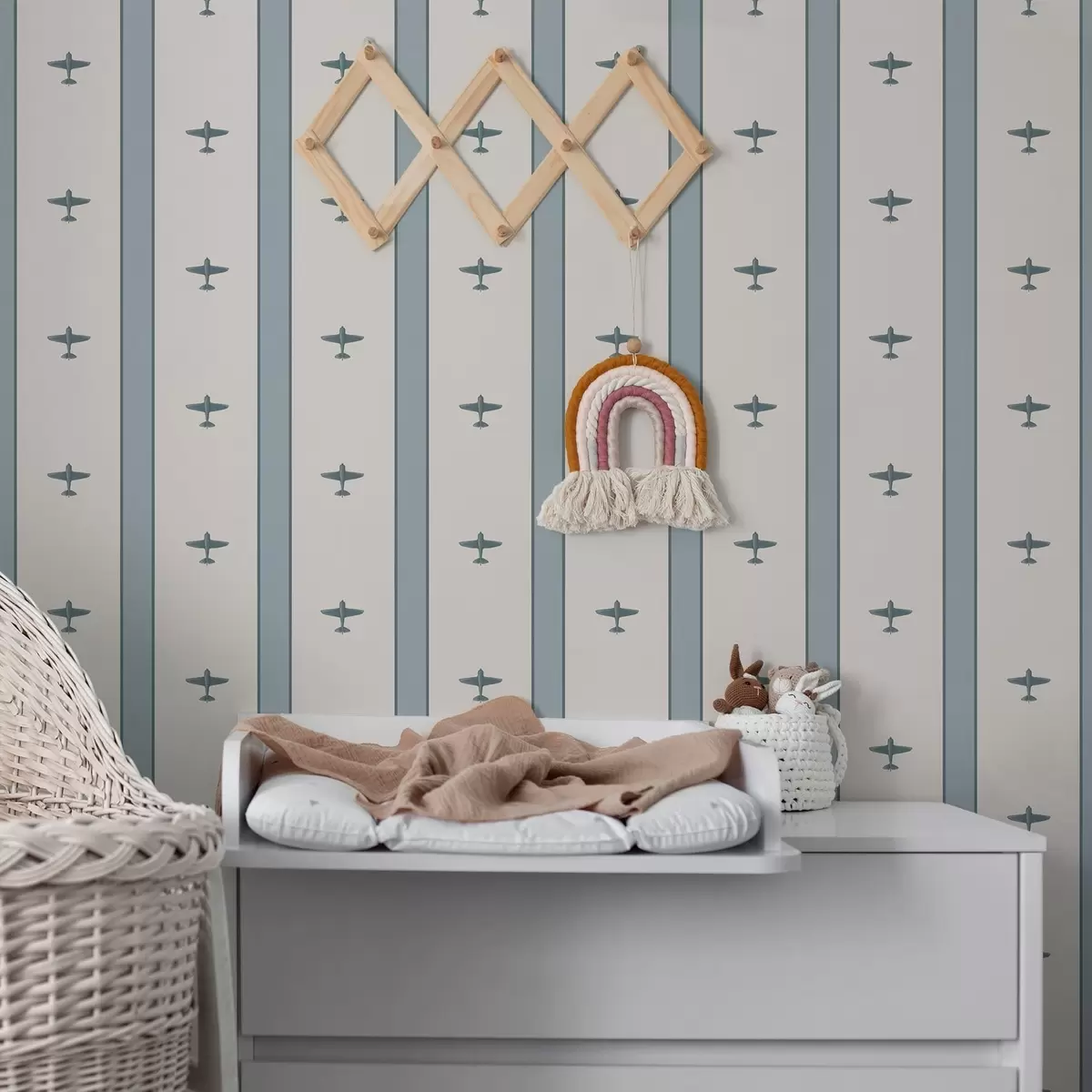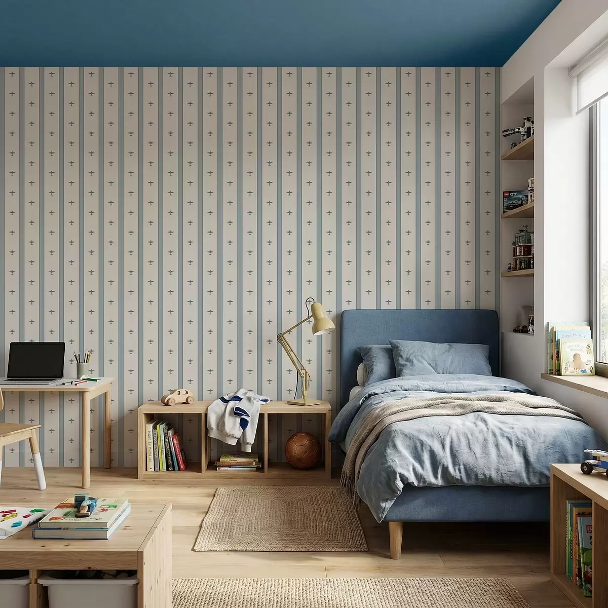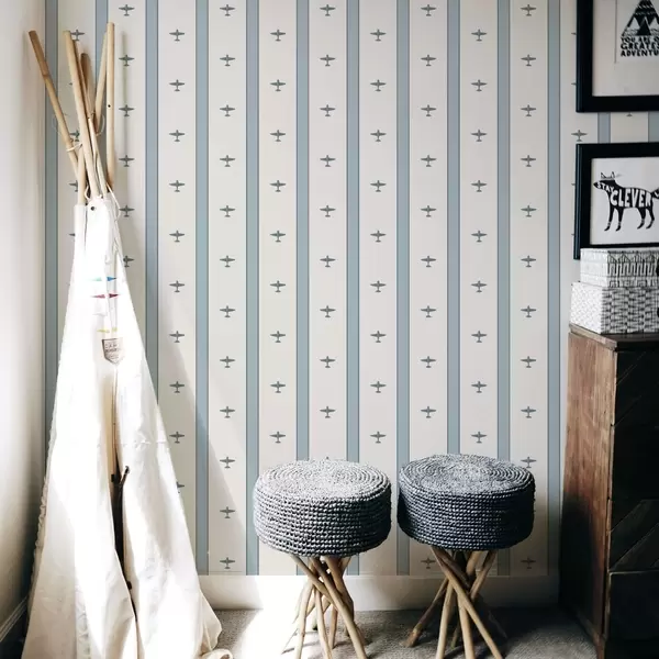 Tapet Små fly med striper på blå bakgrunn Nr. a01171
