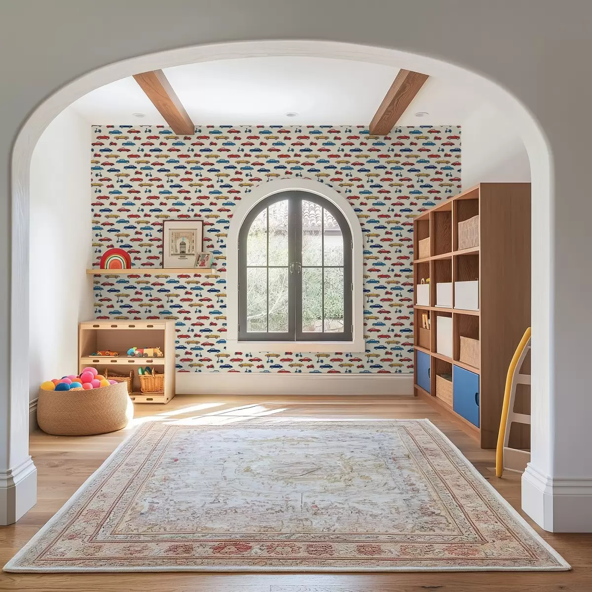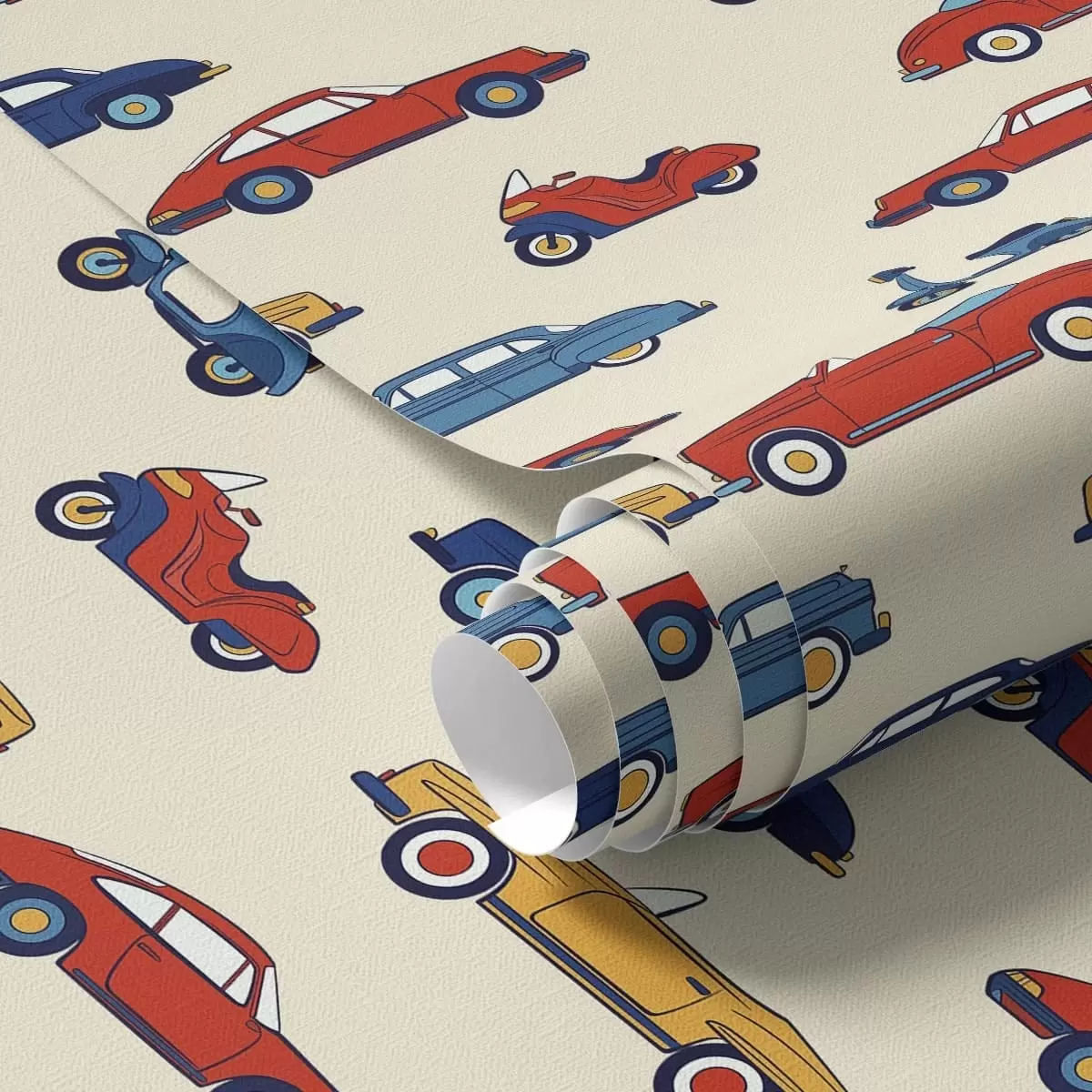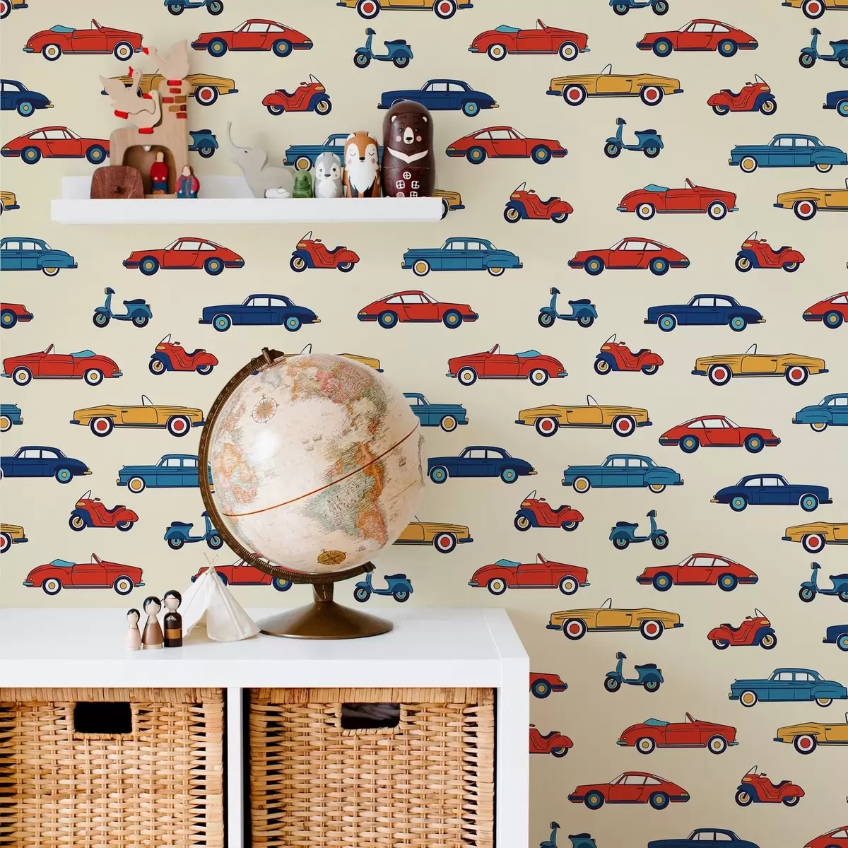 Tapet Fargerike retrobiler og scootere på lys bakgrunn Nr. a01172v1