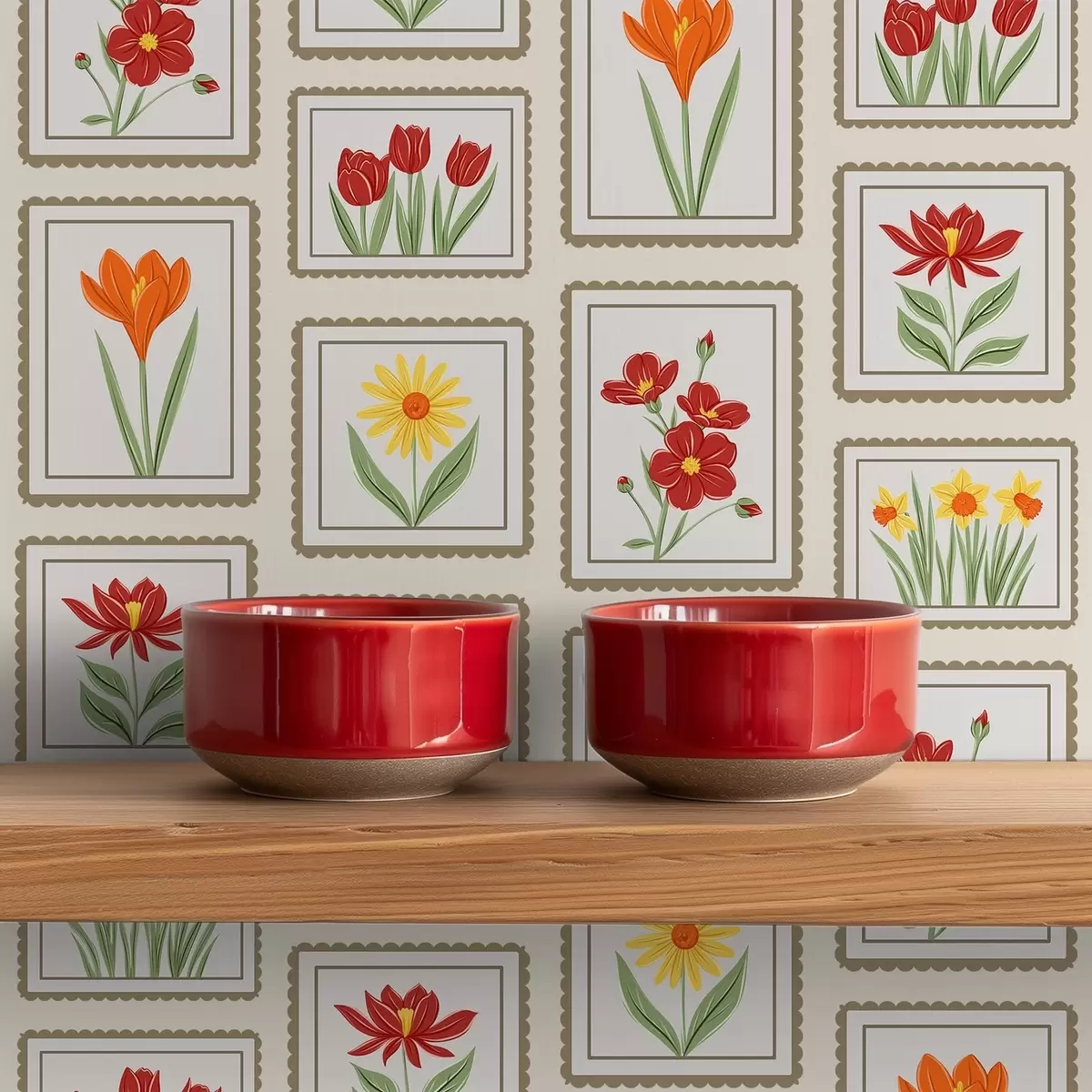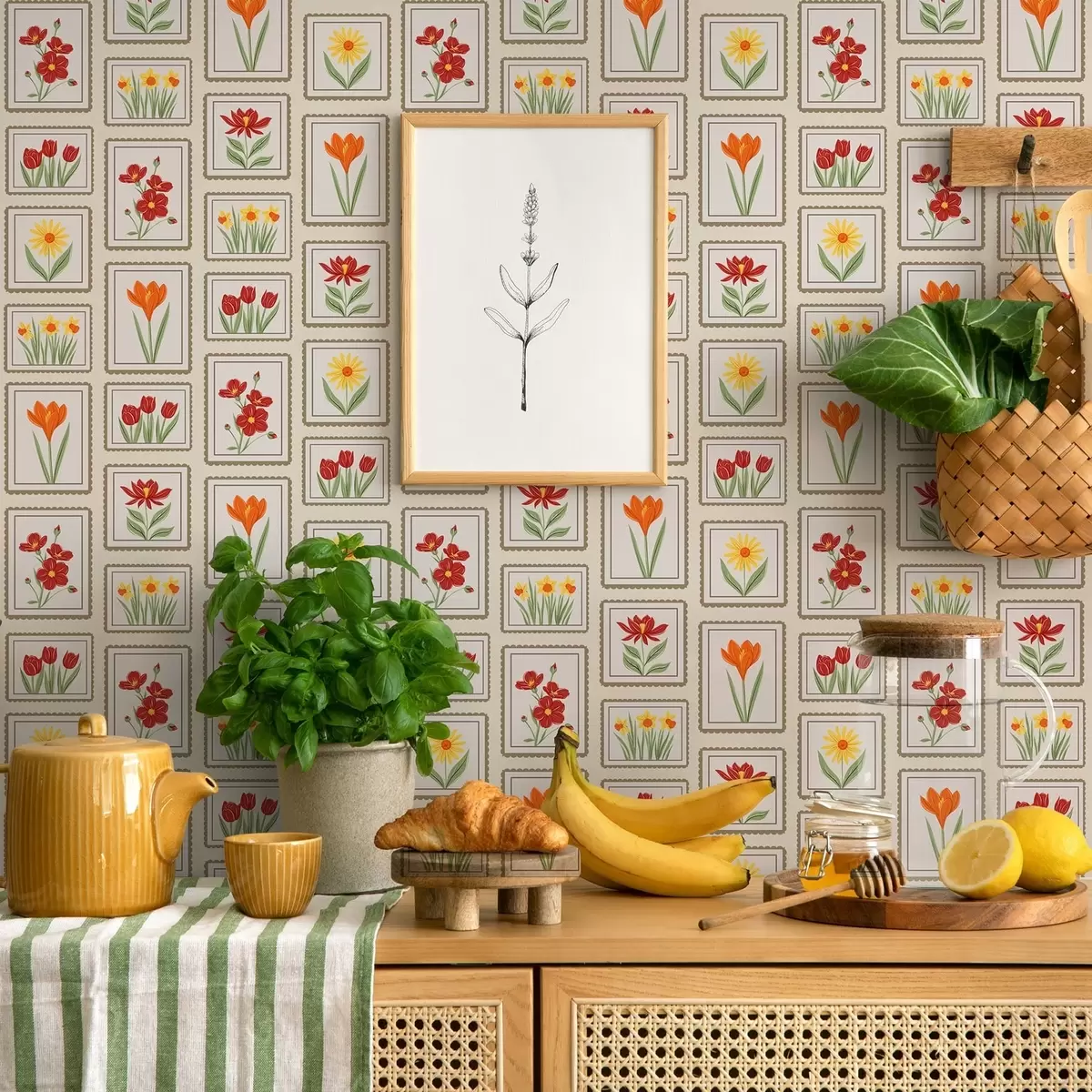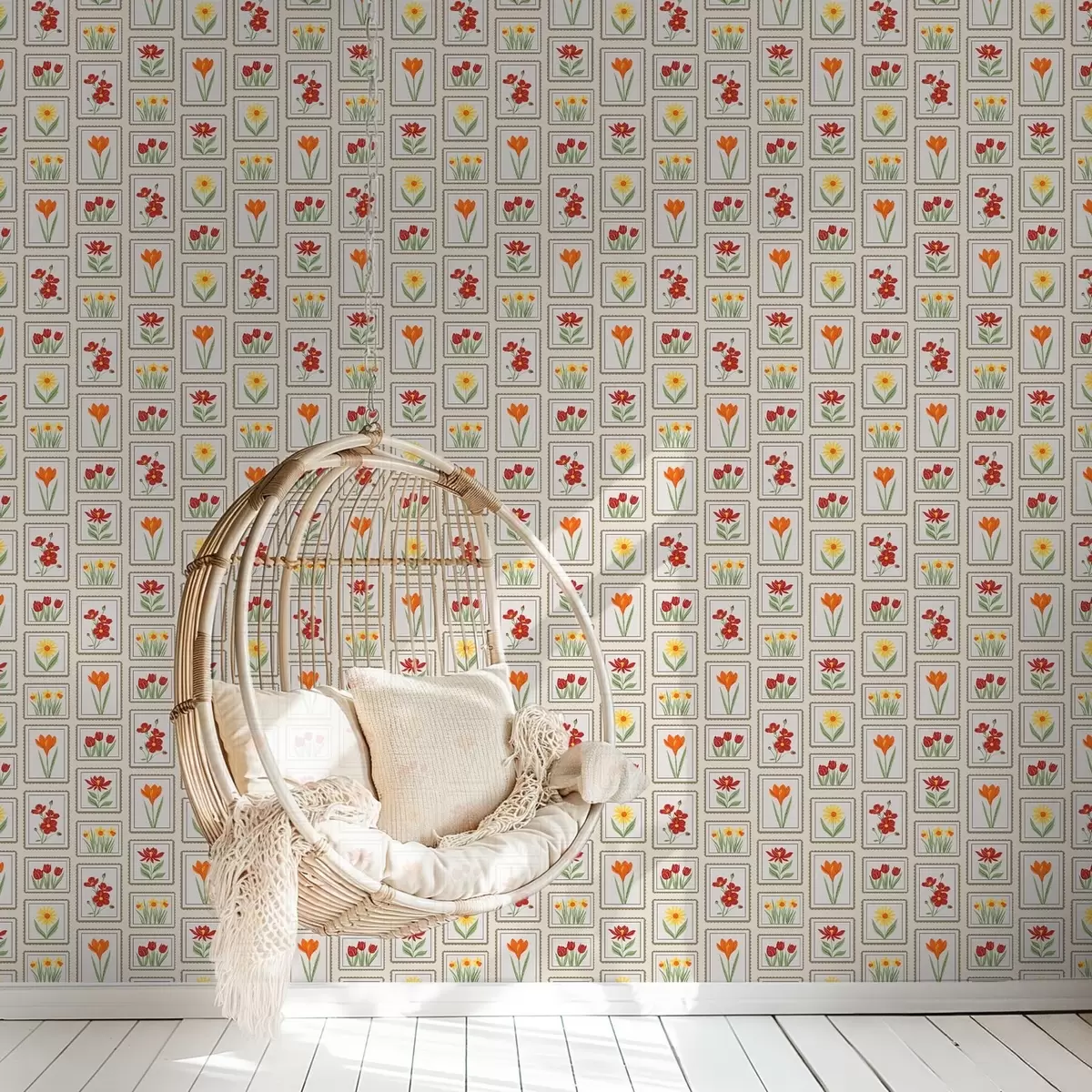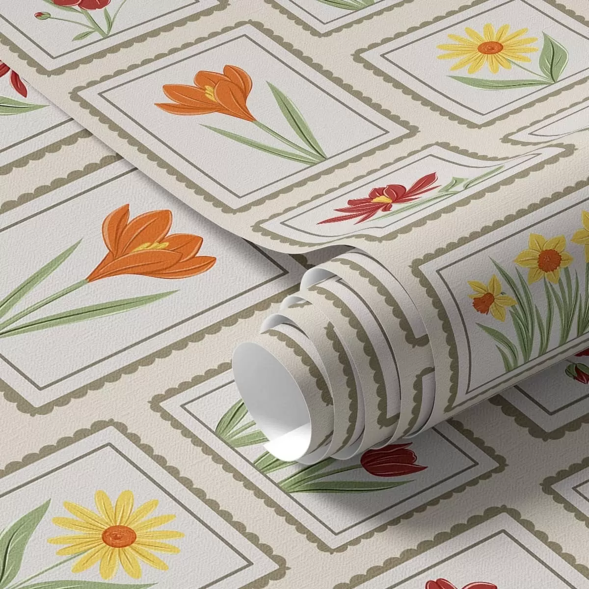 Tapet Lyse blomsterillustrasjoner i ramme Nr. a01174v1