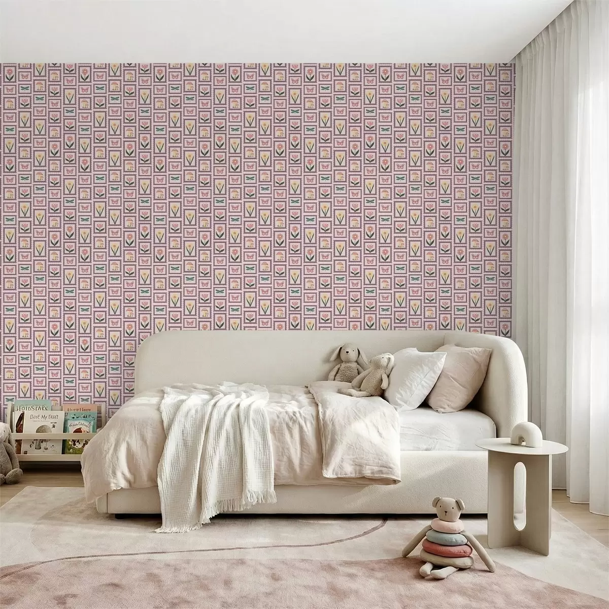 Tapet Innrammede illustrasjoner i lilla nyanser Nr. a01175v1