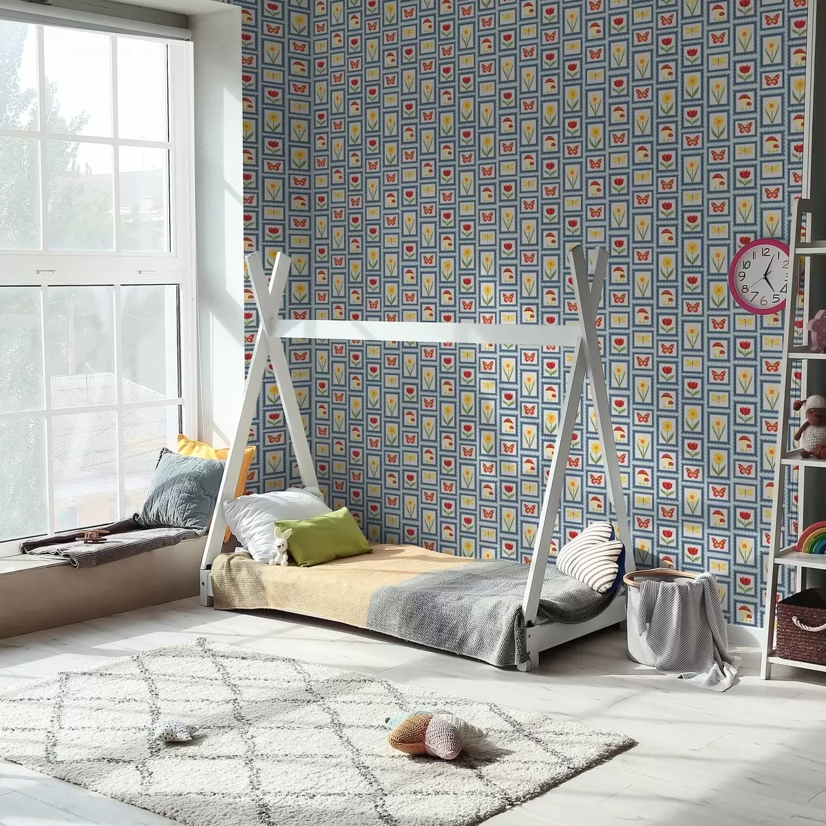 Tapet Innrammede illustrasjoner i blå nyanser Nr. a01175v2