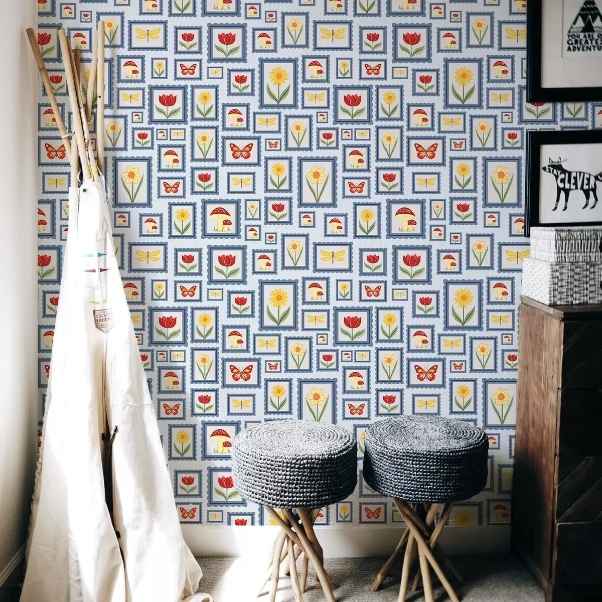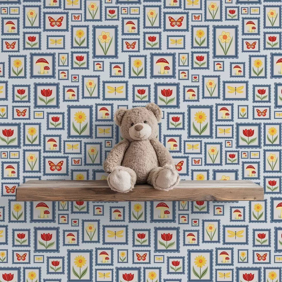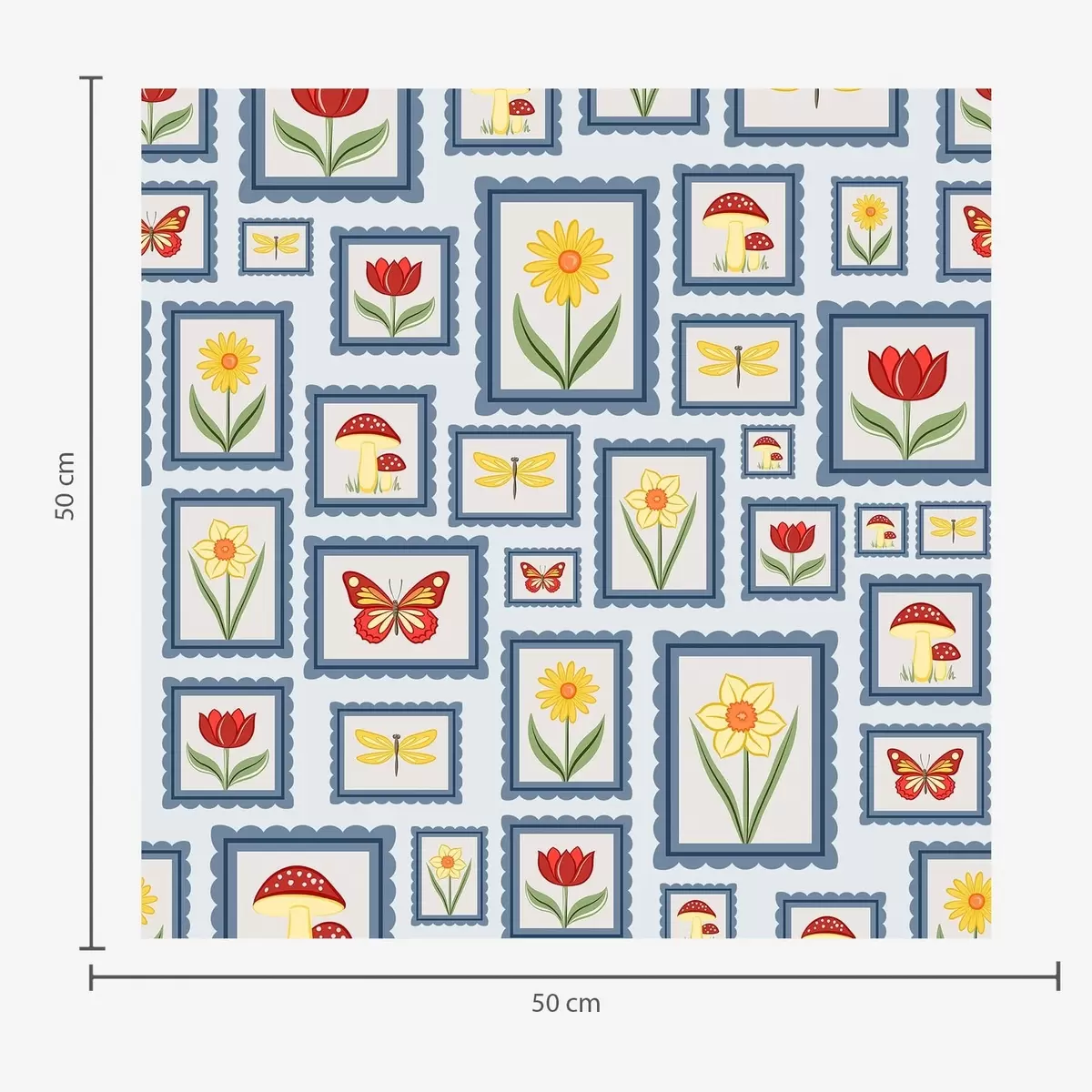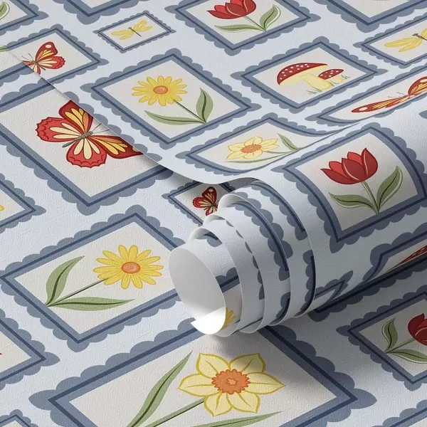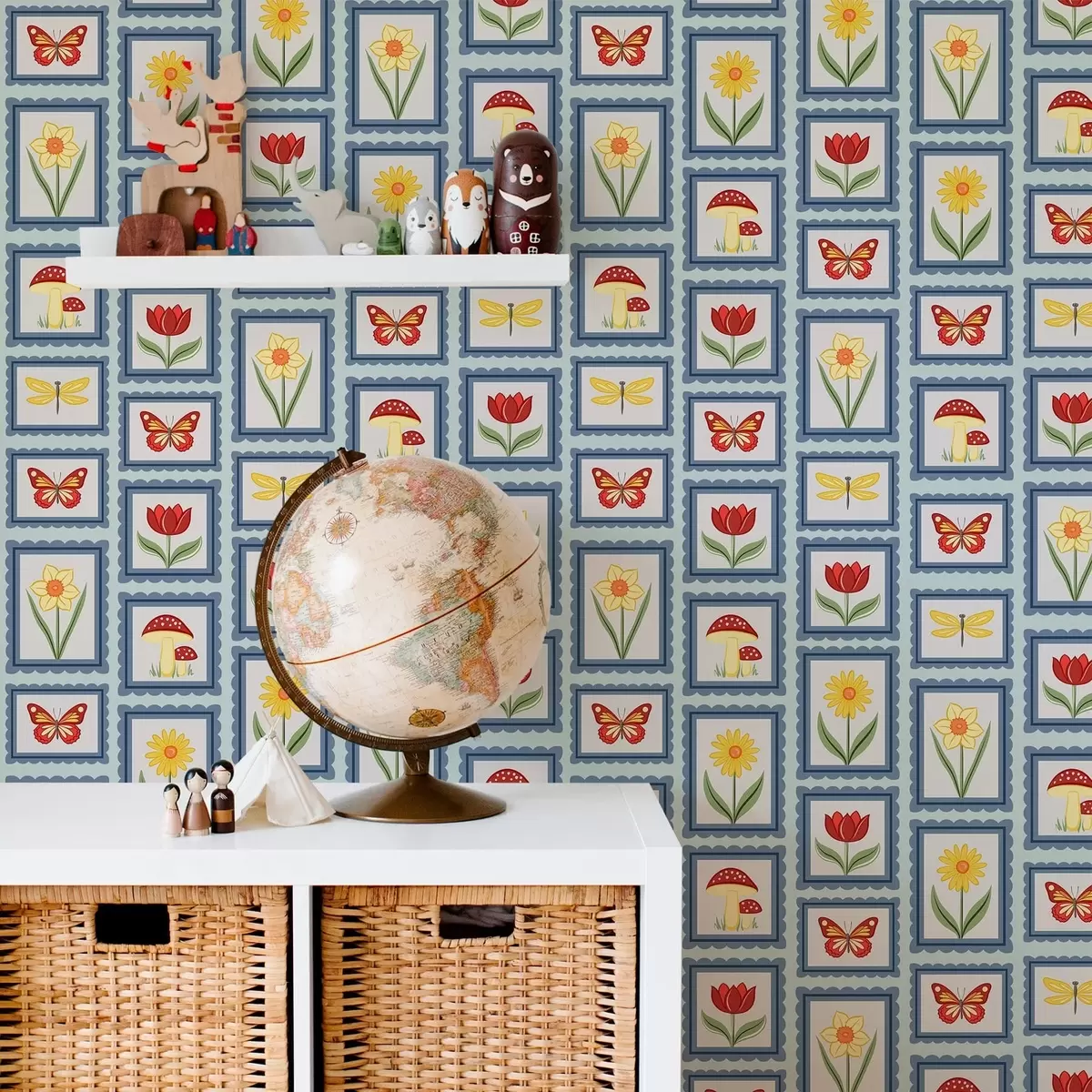 Tapet Innrammede illustrasjoner på blå bakgrunn Nr. a01176