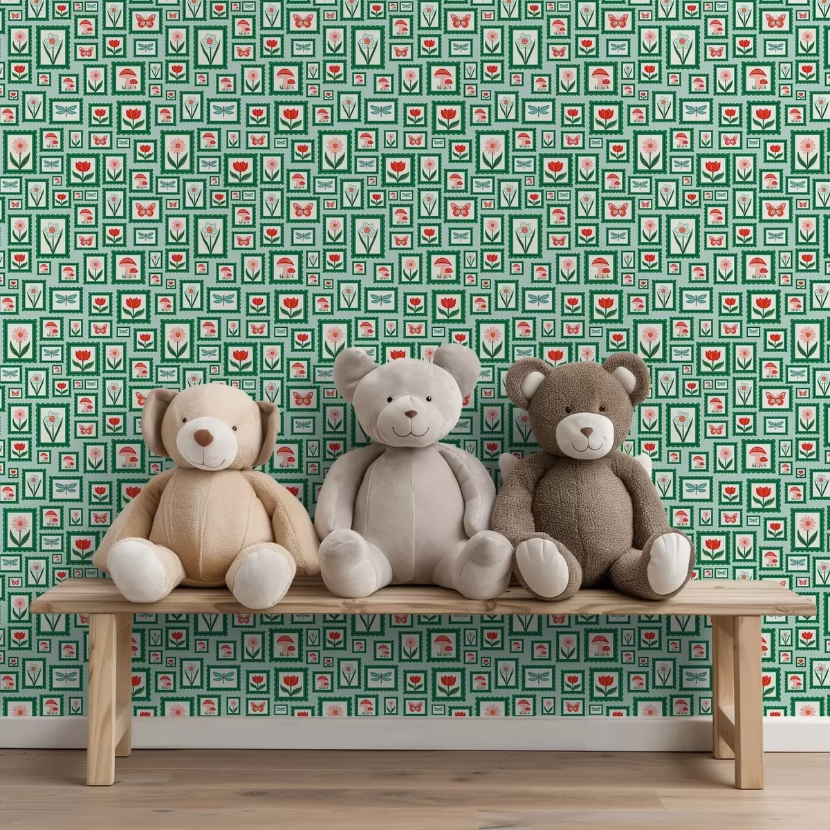 Tapet Illustrasjoner i ramme med grønne kanter Nr. a01176v1
