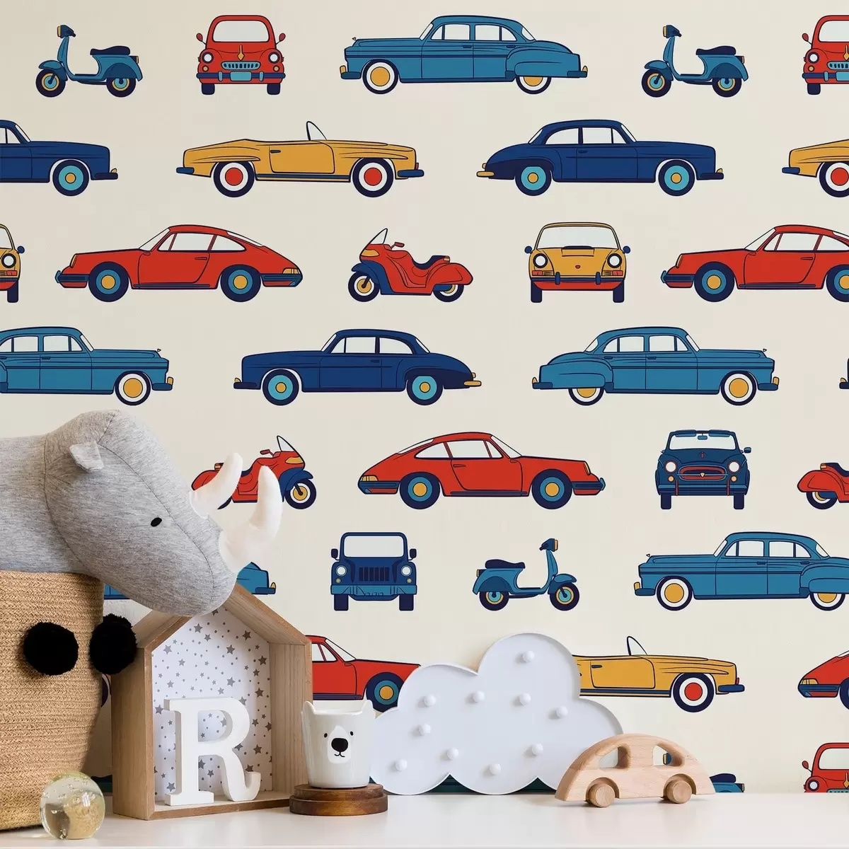 Tapet Fargerike retro-biler og scootere Nr. a01178v2