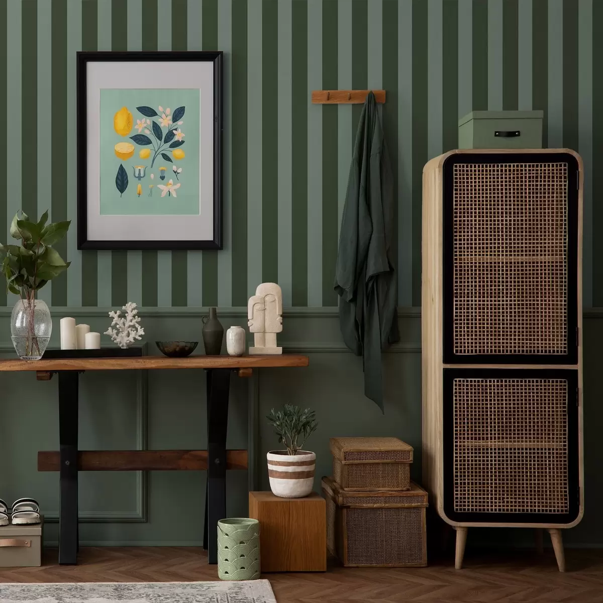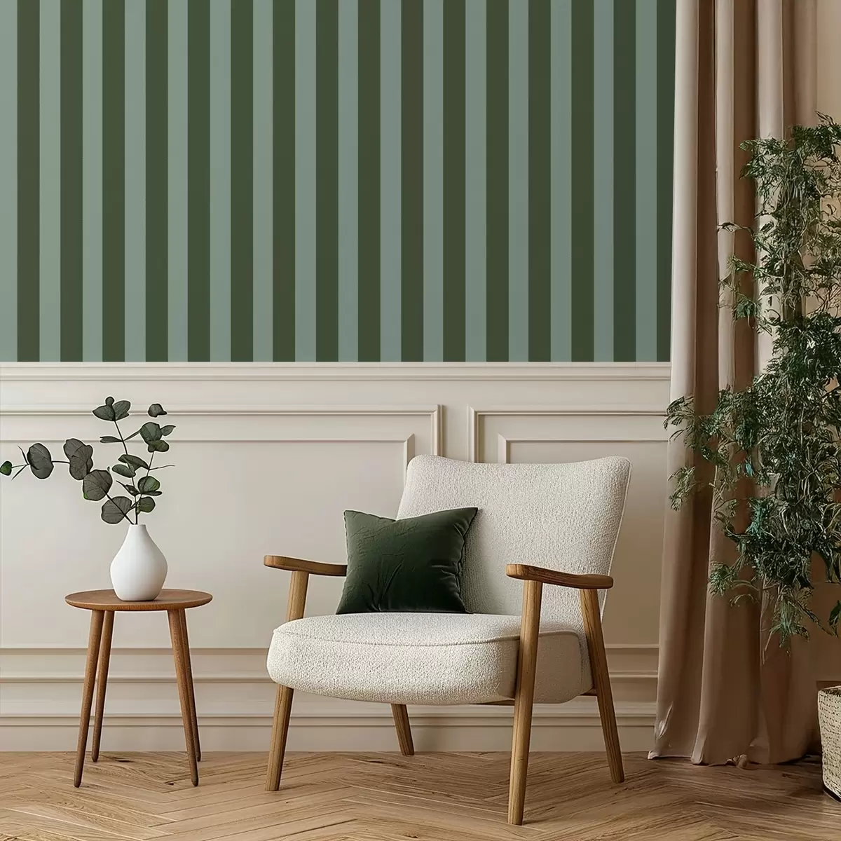 Tapet Mørkegrønne og lyse vertikale striper Nr. a01179v4