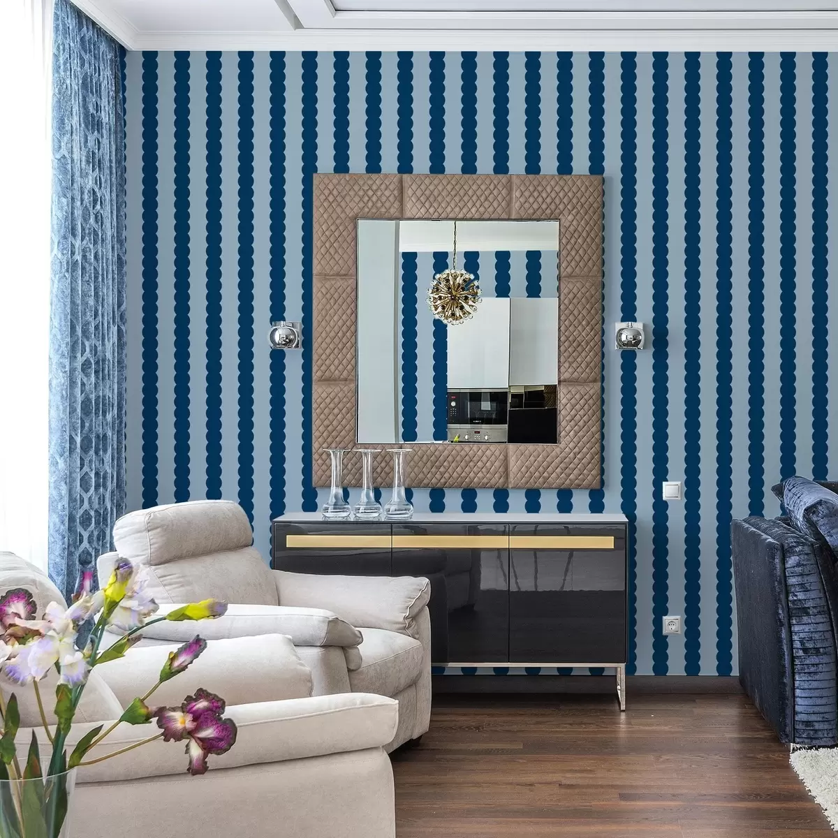 Tapet Mørkeblå bølgete striper i minimalistisk stil Nr. a01182v3