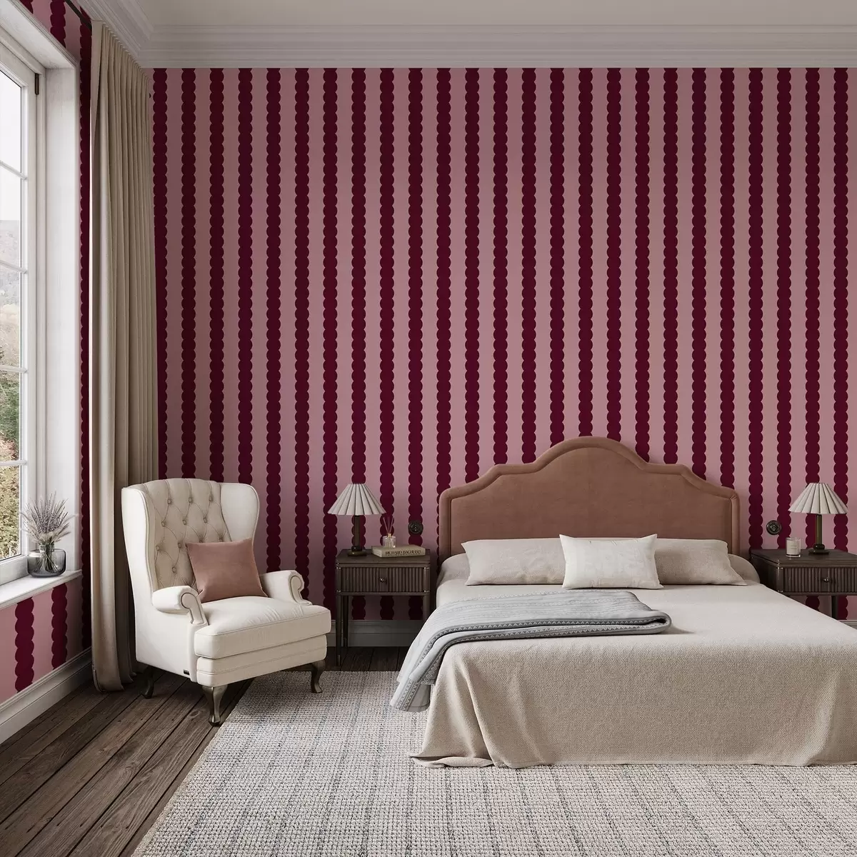 Tapet Burgunderfargede bølgete striper i minimalistisk stil Nr. a01182v5