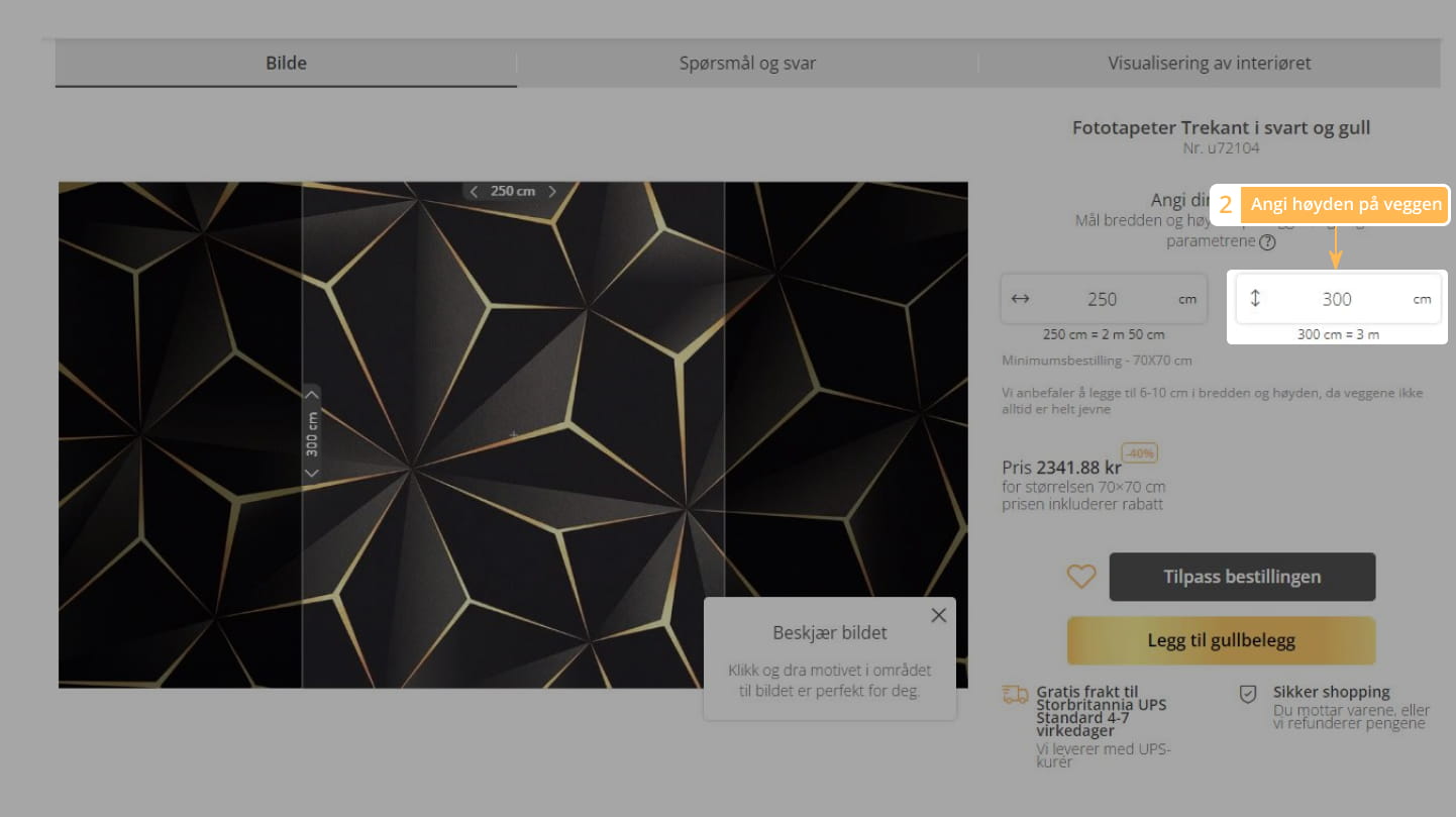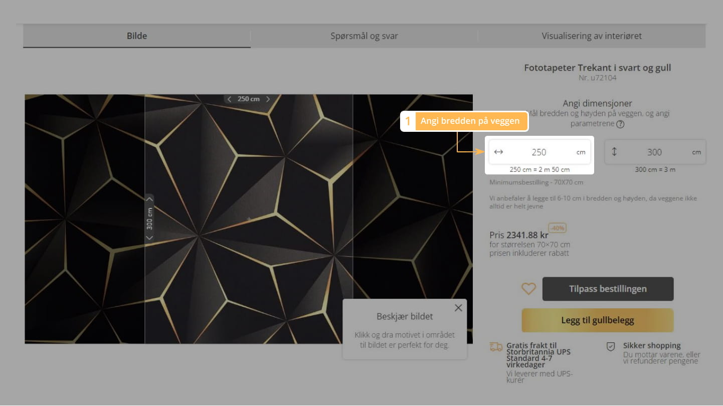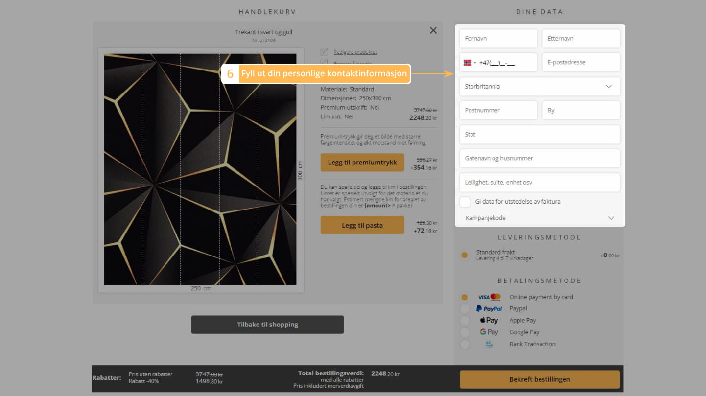 Du kan se beløpet på bestillingen din (pil for å vise beløpet)