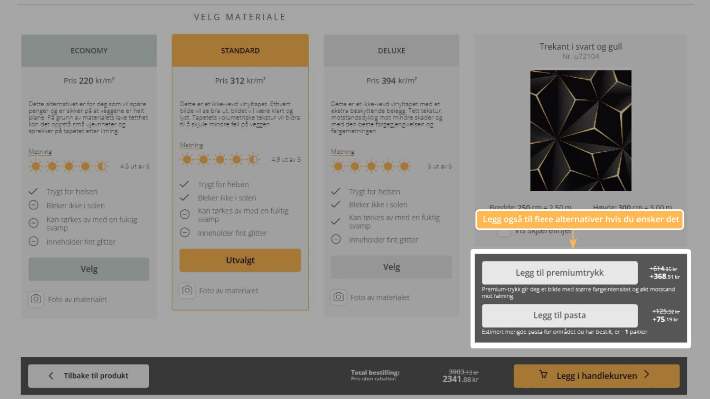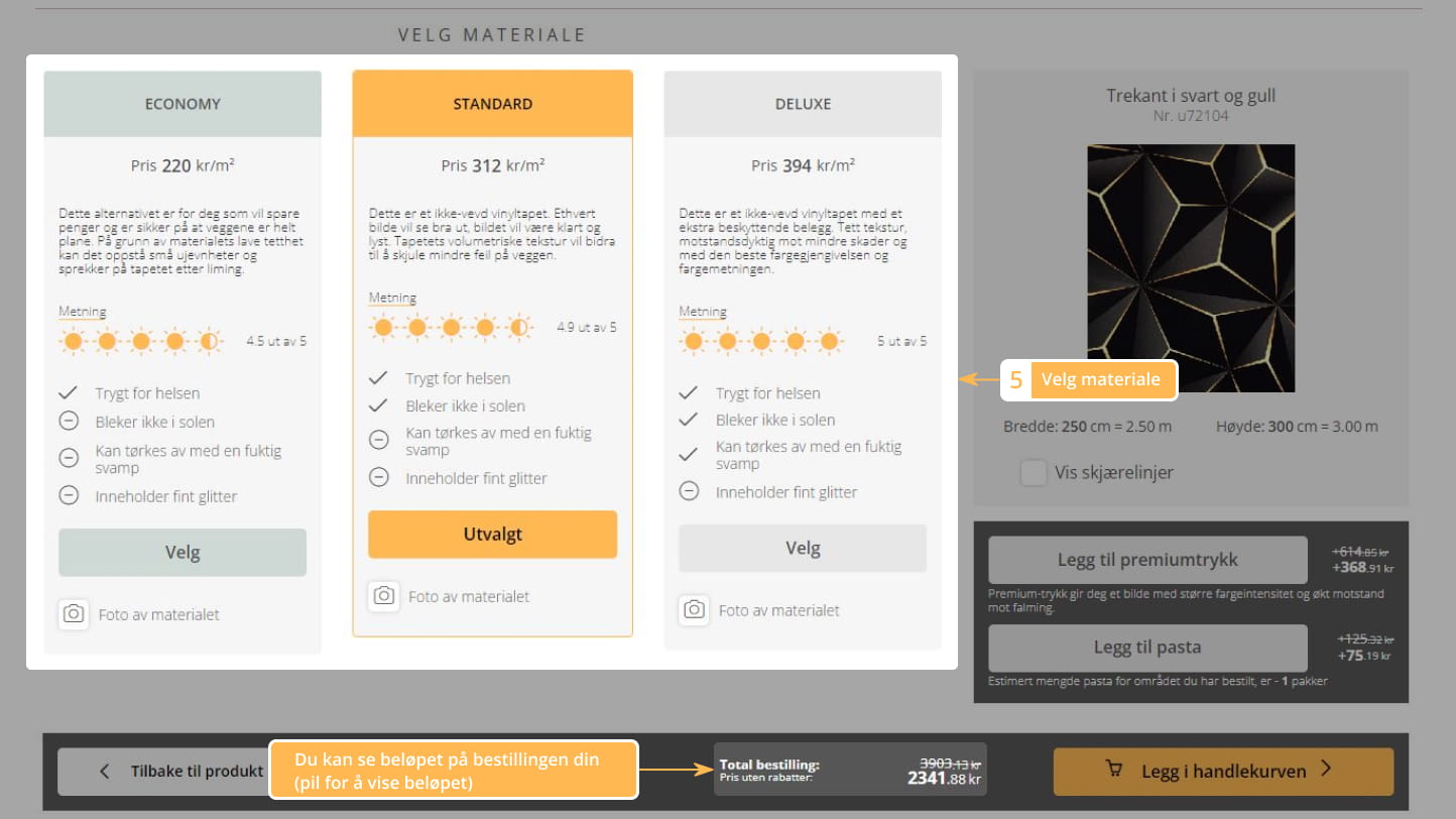 5. Velg materiale. Legg også til flere alternativer hvis du ønsker det